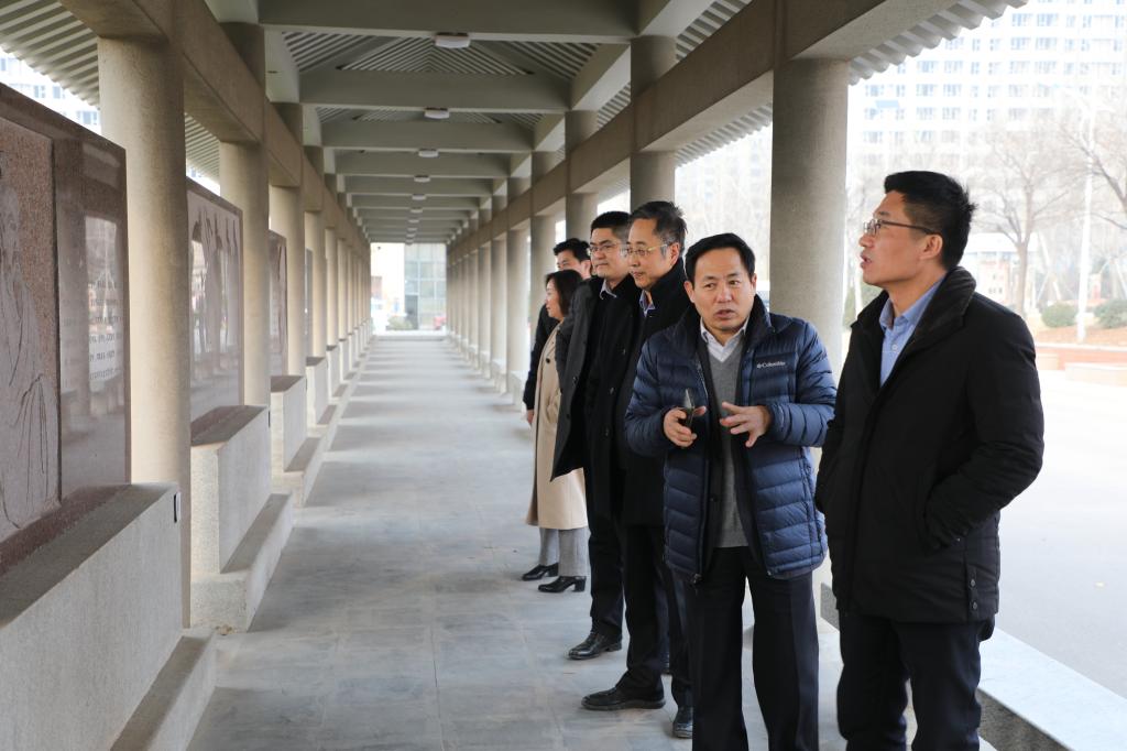 12月10日下午,省教育厅(省委教育工委)思政处党支部在支部书记、思政处处长陈成标带领下到章丘,与BEAT365官网机关党委第三党支部联合开展主题党日活动。陈成标一行首先来到学校,在学校党委副书记刘宝君等陪同下参观了齐鲁文化长廊。陈成标对齐鲁文化长廊有声解说工作给予赞许,并就进一步发挥齐鲁文化长廊研学基地作用,推进文化传承与创新提出了指导性的意见。
