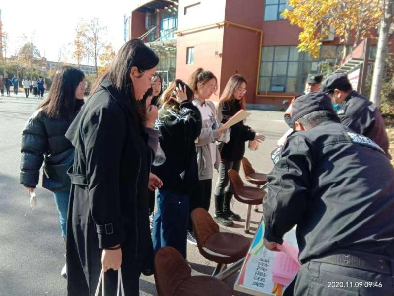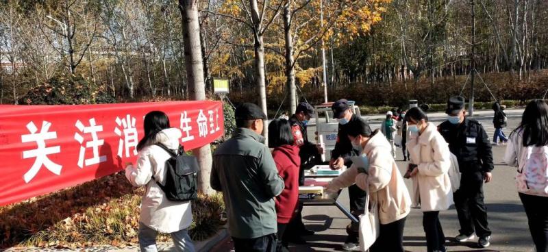 11月9日安全管理处在学生第一餐厅东门举办了以“关注消防、生命至上”为主题的消防宣传活动。