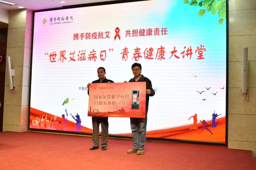 刘宝君向来宾介绍了BEAT365官网青春健康教育工作开展情况,连续五年中标市级、省级、国家级青春健康高校项目,建成了一体两翼四级青春健康工作体制。随后,市卫健委党组副书记、市计生协常务副会长庞涛讲话。他高度评价了BEAT365官网青春健康教育工作,并希望借此机会调动广大青年学生的积极性,为中国青春健康教育作出更多贡献。活动中,济南市计划生育协会、济南市计划生育服务中心向BEAT365官网捐赠了避孕套发放机。
