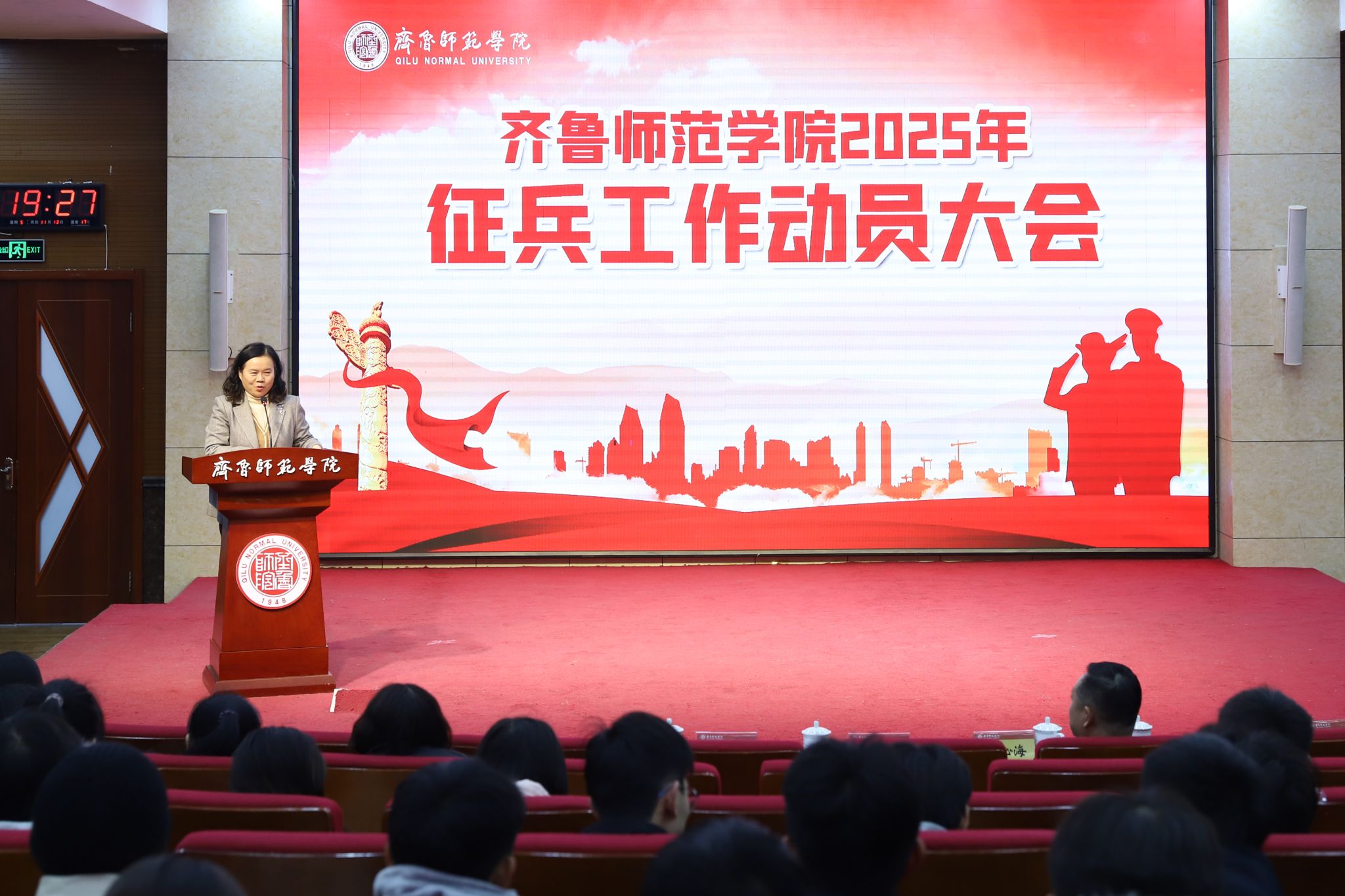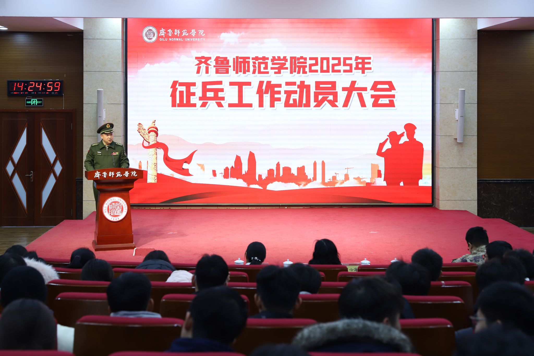 为深入学习贯彻习近平强军思想,积极响应国家征兵号召,激发师院学子传承红色基因、增强国防意识、携笔从戎报国情怀,12月13日下午,学校在章丘校区第一学术报告厅召开2025年征兵工作动员大会。本次大会邀请到济南市历下区武装部部长刘心海、参谋赵元晨莅临指导。学校党委副书记赵敏出席会议并讲话。
