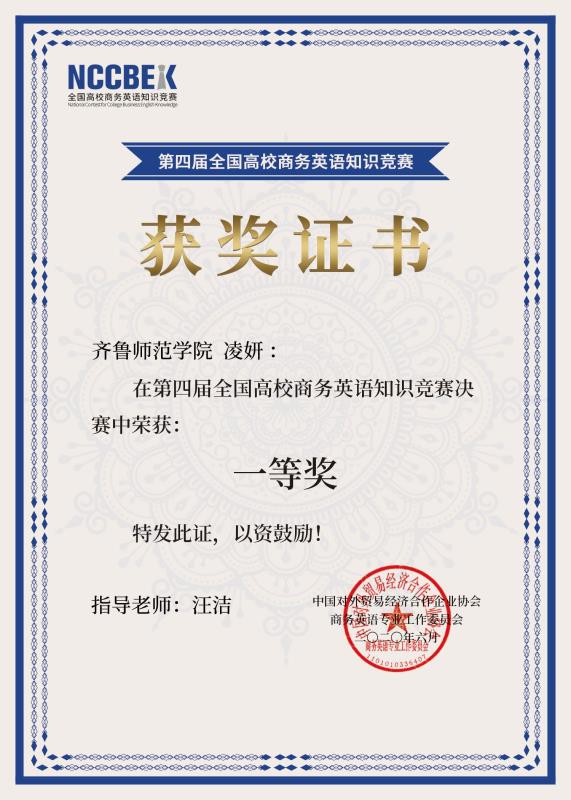 外国语学院学生在第四届全国高校商务英语知识竞赛中喜获佳绩