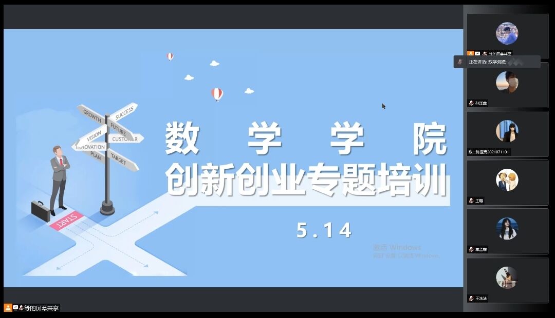 为了提高同学们创新创业能力,激发同学们的创业热情,5月14日,数学学院举办了创新创业线上培训会。此次培训邀请了创业培训导师尚红博老师、创业实训导师孙文佳老师主讲,共计200余名学生参加此次培训。