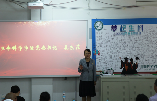 夏花绚烂,不负时光,又是一年毕业季,又至学子行远时。鲜花怒放桃李芬芳,歌舞飞扬不改离殇。为欢送2022届毕业生,见证和祝贺毕业生圆满完成大学学业,6月15日上午生命科学学院在1号教学楼A207隆重举办“青春扬帆,梦想起航”2022届毕业生毕业典礼暨学士学位授予仪式。生命科学学院党委书记姜东菲、院长李师鹏、党委副书记朱广伟、副院长崔大勇、院长助理史远、办公室主任崔寅、团总支书记张宏熙、团总支副书记房继德、辅导员徐茜茜、陆含,班主任代表赵淑举、孙婷婷以及2022届300多名毕业生共聚毕业典礼现场,共同见证这难忘的时刻。毕业典礼由朱广伟主持。