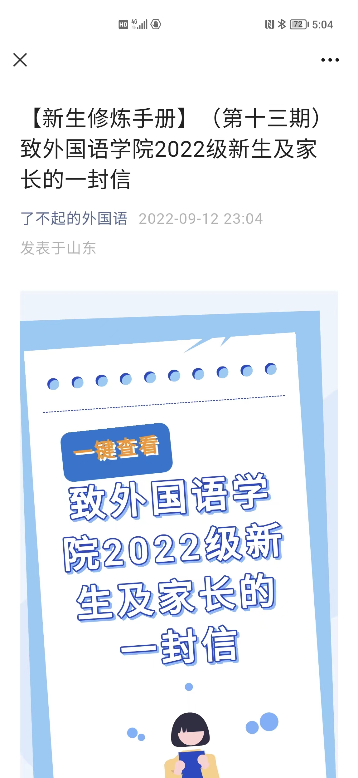 网络迎新、拓展渠道,筑牢思想引领阵地。为帮助新生尽快转变身份、了解学校和学院情况,在获取录取名单的第一时间,学院由专人主动与每一位录取学生取得联系,建立了新生QQ群和微信群。在群内,学院安排辅导员和高年级优秀学生入群为新生答疑解惑。与此同时,学院依托官方公众号“了不起的外国语”开辟了“新生修炼手册”专栏和官方抖音号的新生“show”专栏,从8月初起持续推送迎新专题,内容涵盖了校院介绍、师生风采、团学简介等。学院还于开开学前召开了全体新生线上班会和学生家长会,利用新媒体优势,发挥网络育人的主阵地、主平台、主渠道作用,做好家校联合工作,使新生将适应阶段前移,实现从高中生活到大学生活的无缝衔接和完美角色转换。