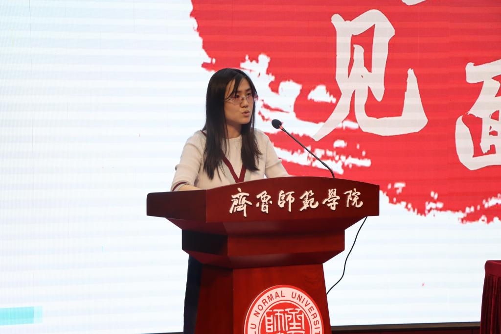 2019级化学(师范类)专业学生王孜帆以《孜孜以求探真知,砥砺扬帆再起航》为题发言,她从专业学习、创新创业、社会实践、综合素质四个方面分享了自己的学习经历与成长感悟,汇报了她和同学们三年来在学院老师指导下取得的优异成绩,勉励新生树立远大理想、明确奋斗目标,坚持理论与实践相结合,以信仰为帆、以行动为桨,做一个有理想有担当的新时代青年。