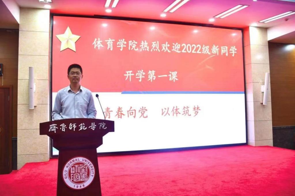 体育学院党委书记胡义忠以“青春向党以体筑梦”为题为2022级新生讲授“开学第一课”。他指出,青春向党是一种信仰,只有秉持这种坚定且正确的信仰,才能更好成长成才。每名同学都应该“知党情、感党恩、听党话、跟党走”,作为新时代的大学生要深入学习习近平新时代中国特色社会主义思想,学习贯彻落实习近平总书记关于体育的重要论述,把体育放在体育强国梦、中华民族伟大复兴的中国梦的角度来看待,热爱自己的专业热爱体育事业,践行中华体育精神、中国女排精神、北京冬奥精神,把强国有我作为一份对祖国对民族对社会的誓言,为祖国民族和社会的发展贡献力量。他从“四要”“三转变”“三学”等方面告诉学生如何更好的适应大学生活,并强调每名同学都应践行社会主义核心价值观、积极投身社会实践,发扬志愿服务精神,通过个人努力实现自己的梦想,共同助力伟大的中国梦。
