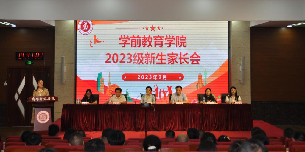 9月9日下午,学前教育学院在章丘校区第一学术报告厅举办2023级新生家长会。学院院长常爱玲、党委书记郑海斌,团总支书记郭飞、新生辅导员岳雍君、孙超越以及2023级新生家长参会。会议由学前教育学院党委副书记孙建凯主持。