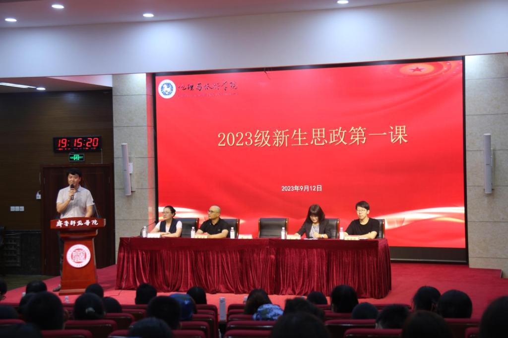 为帮助2023级新生尽快融入大学生活,扎实做好新生教育工作,9月12日晚,地理与旅游学院在第一学术报告厅召开2023级新生见面会。学院党委书记秦拓,副院长王敏、惠洪宽、田瑞聪,教师代表董晓红教授、2023级新生班主任以及2023级全体学生参加会议。会议由团总支书记宋高娃主持。