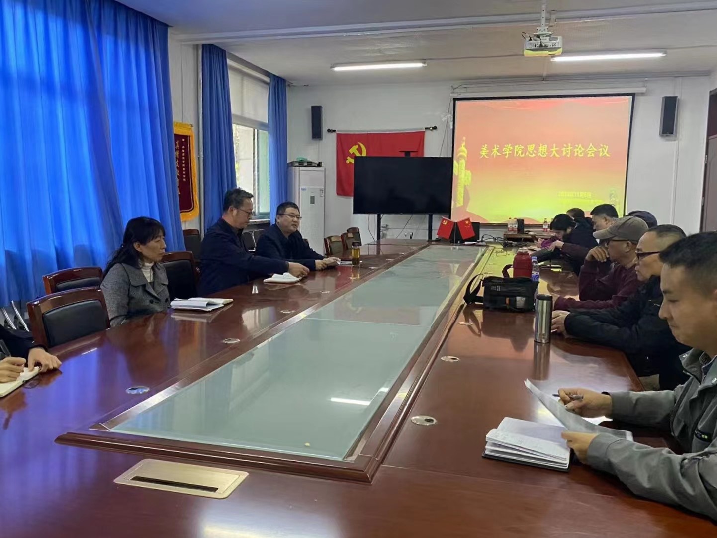 11月6日,根据学校校长办公会有关精神,美术学院召开思想大讨论工作会议。会议坚持务虚和务实相结合,联系工作实际,对工作进行梳理和反思,认真剖析原因,以思想大讨论促进作风转变和工作提升。学院全体坐班人员、教研室主任参加会议,学院党委书记辛源主持会议。