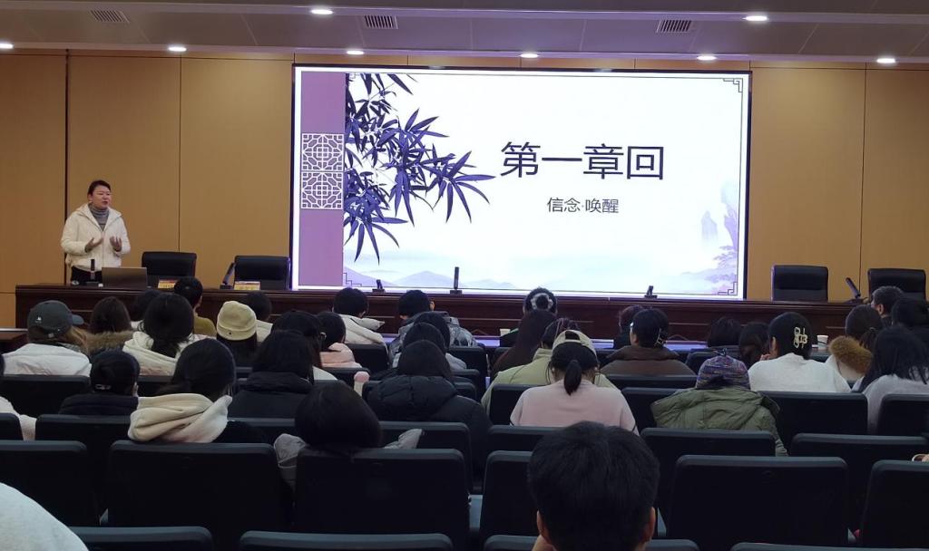 洛阳师范学院“大地明师班”班主任丁兴琴进行了教学经验分享,向同学们分享了“大地明师班”的课程设计思路、教学理念、践行的教育精神等。她介绍,“大地明师班”的课程设计是从“专业认知、学生认知、自我认知”三个维度出发,突出“理念+操作+体验”,强调实操、实战、实效,主张在“做中学”,努力追求“教学做的合一”。“大地明师班”的教学理念一是自修与共创,即“自主+”的理念,二是遇见与对话,即同教科书的相遇与对话,同教室里伙伴的相遇与对话,同自己的相遇与对话。“大地明师班”践行两种精神:一是一厘米之变精神,二是长期主义精神。丁老师的经验分享使学员们看到了具体的成长路径和直观的发展前景,深刻认识了到“大地明师班”的课程价值。