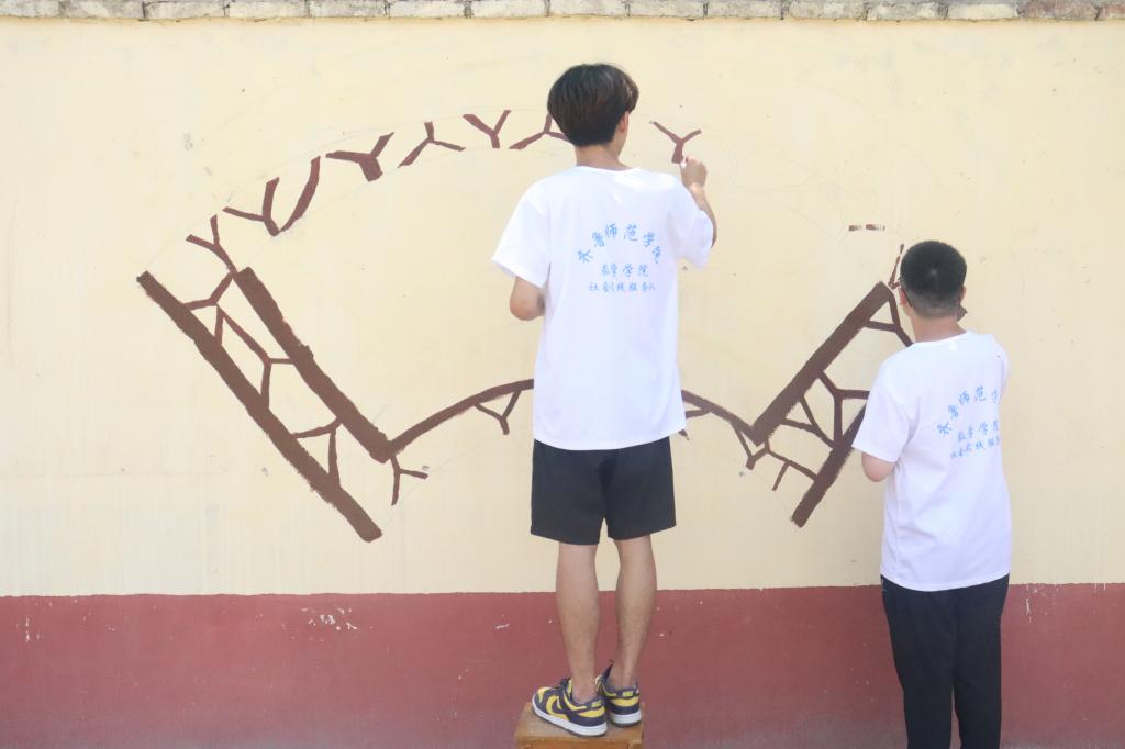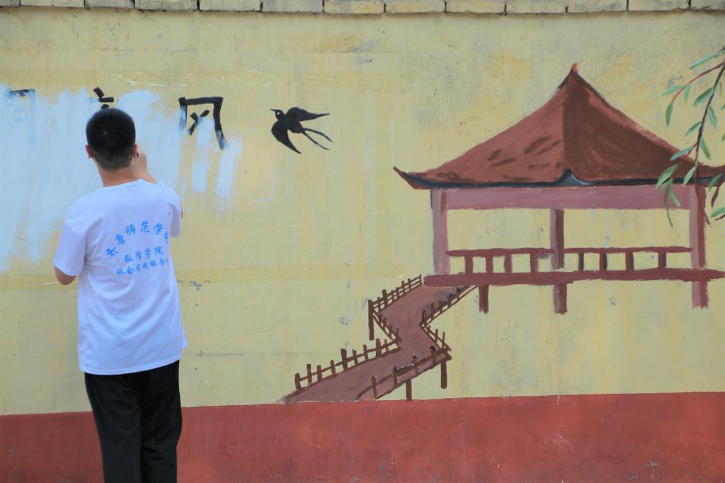 6月20日,数学学院“同心燃梦”服务队来到菏泽市单县时楼镇孙庄村,应村委会邀请,进行墙绘绘制活动,宣传社会主义新农村良好风尚。