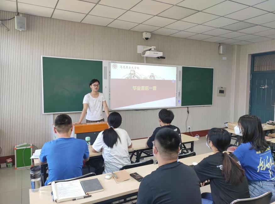 为树文明离校之风,扬爱校荣校之情,5月22日,马克思主义学院在一号教学楼A312举行2018级毕业生“最后一课”,马克思主义学院团总支副书记王雅文、2018级思想政治教育本科班全体学生参加。