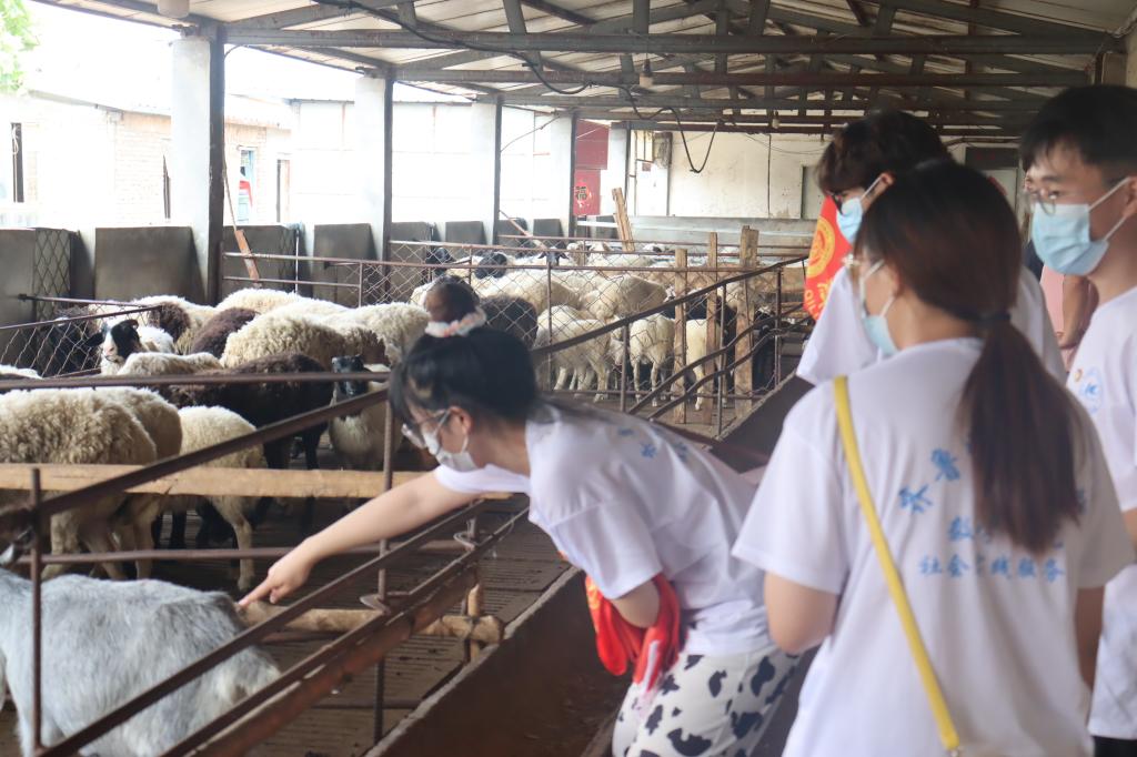 参观过程中,村党支部书记讲解养殖场的区域划分、羊群分类、大鹅的生活习性等知识,与服务队队员们分享村民们养殖经验以及近年来单县养殖业的进步和变化。同时,队员们在养殖户的指导下与动植物们近距离接触,学习正确地赶鸭、喂羊等方法。