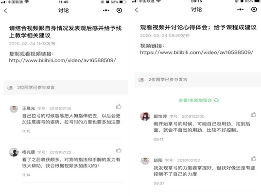 老师们利用mooc平台小程序慕课堂进行了签到,讨论组发言,微信视频回课等方式进行与学生们的沟通交流。