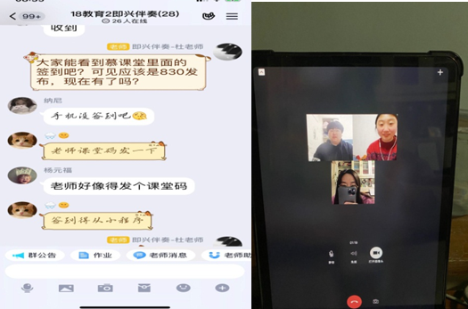 二月二十四日正式开始网络授课。由于上线人数较多,各平台的服务器一度出现崩溃现象。老师们及时调整方式,在各平台签到后及时转到微信、QQ等平台。按时完成了各自的教学任务。