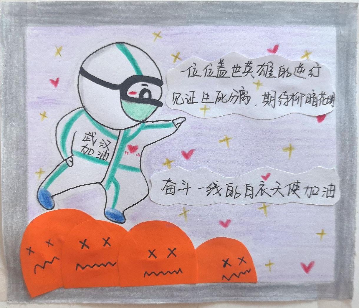 为更好地对抗击疫情情况进行宣传,我院开展以艺战“疫”宣传画征集活动,全院学子积极投入,以绘画、海报等形式讴歌在一线上的战 “疫”先锋,为中国加油,为武汉加油!科普抗“疫”知识,分享自身感悟,为抗击疫情做出贡献,向社会传递正能量。短短的四天时间,共收到作品105个,每一副作品都是学生用心、用爱勾勒出来的,色彩与线条表达的都是他们真挚的情感。其中一等奖3名,二等奖5名,三等奖7名。