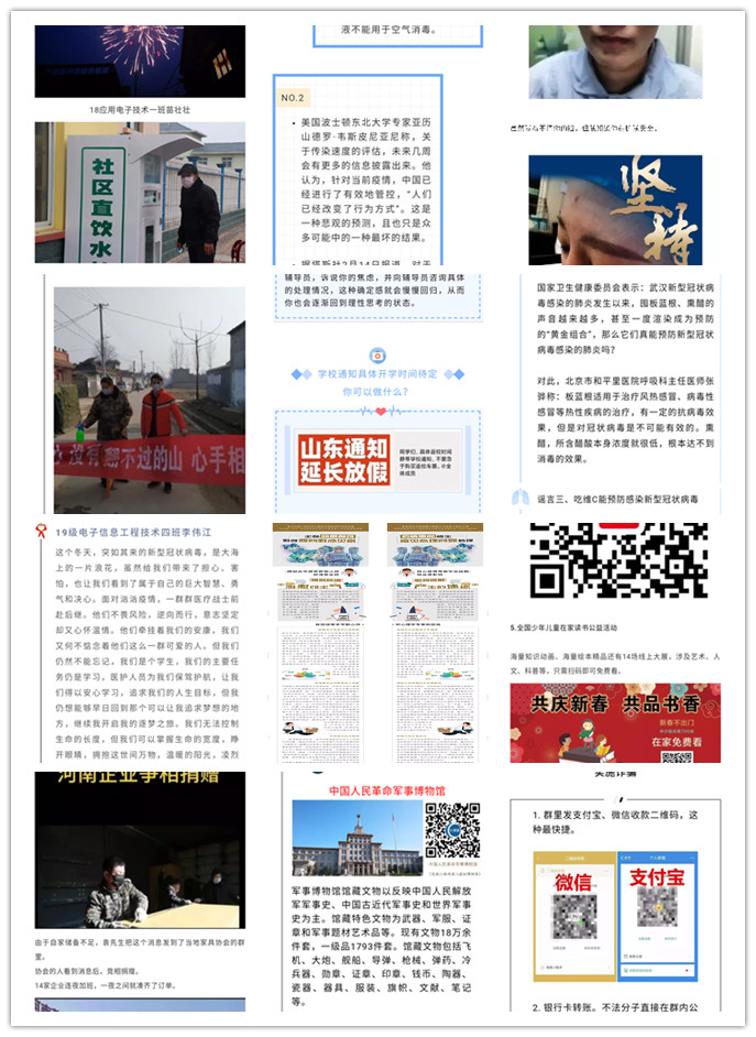 情感凝聚力量!2月3日起,为进一步提升全院师生的疫情防控能力,筑牢疫情防控堤坝,提升师生思想政治素养,加强与师生的密切联系,在党总支副书记宋维国指导下,辅导员张淑芬老师组织学生新媒体中心推出“‘疫’战到底,为爱护航”系列主题策划活动。通过该活动,学院推送致全体学生的一封信,党总支书记庞守荣带领班子成员录制视频对大家进行亲切慰问和殷切叮嘱,让广大学子感受到来自学院的关爱和惦念,并进一步明确学校防疫要求。平台还在学生中广泛征集、挖掘抗疫作品、抗疫志愿者、捐款者、学习典型、读书心得等,强化学生抗疫参与感、责任感,充实学生居家生活。