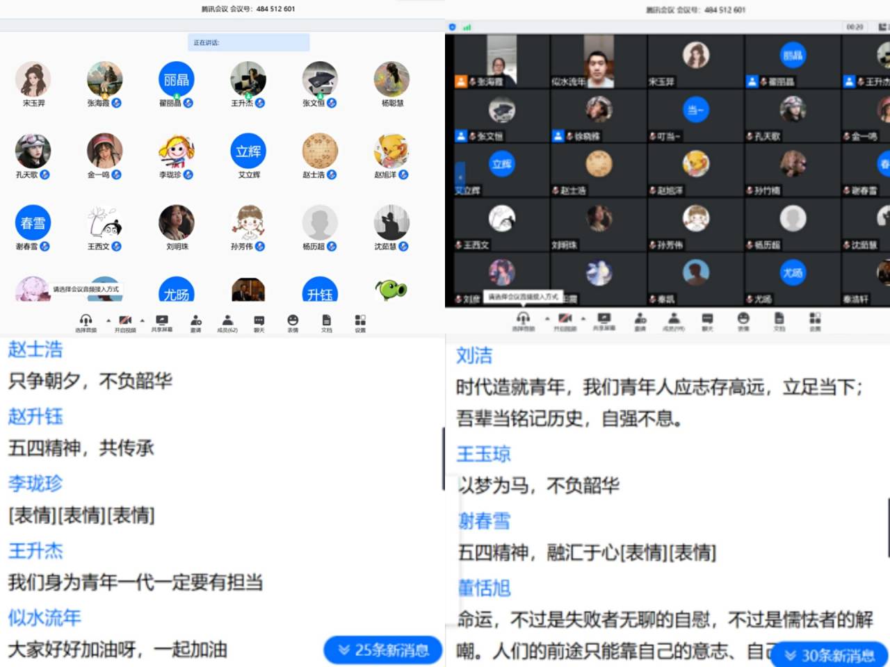 上午10点学校全体学生参加“让青春为祖国绽放”网上主题团日活动。此次主题团日有“出彩青春”、“战疫青春”、“奋斗青春”、“绽放青春”四个篇章,十小时的超长直播将青春的五四精神表现得淋漓尽致。