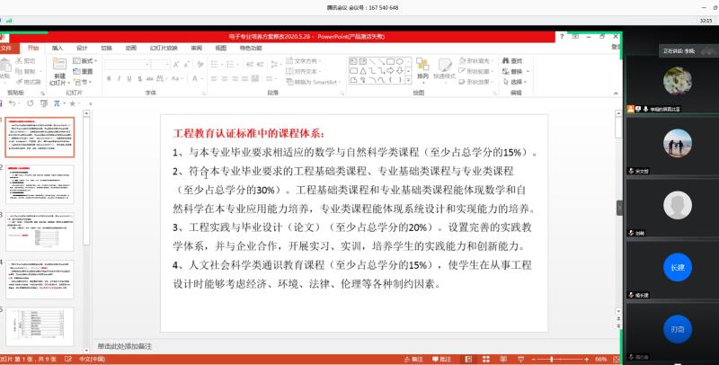 5月28号下午,物理与电子工程学院以腾讯会议方式召开电子信息工程专业人才培养方案修订论证会,会议由物理与电子工程学院张洁院长主持。