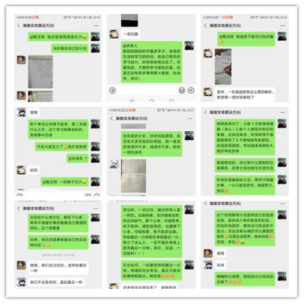 有了规划还不行,得有效落实才行。步老师变身“步妈妈”,当起了学生们的义务监督员。“经常通过微信、电话、面对面谈心等方式交流。”此外,她还建立交流群,要求学生们每周交一次学习计划和总结,大家在群内互相监督,并协调计划中需要调整的地方。从考研指导开始至考研结束,期期没落。