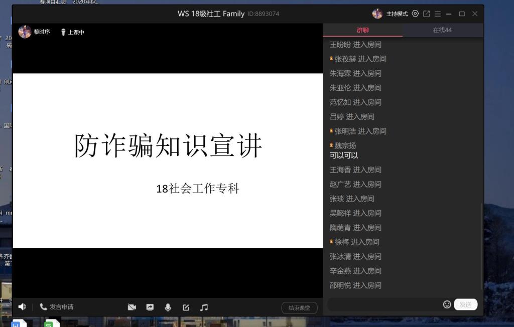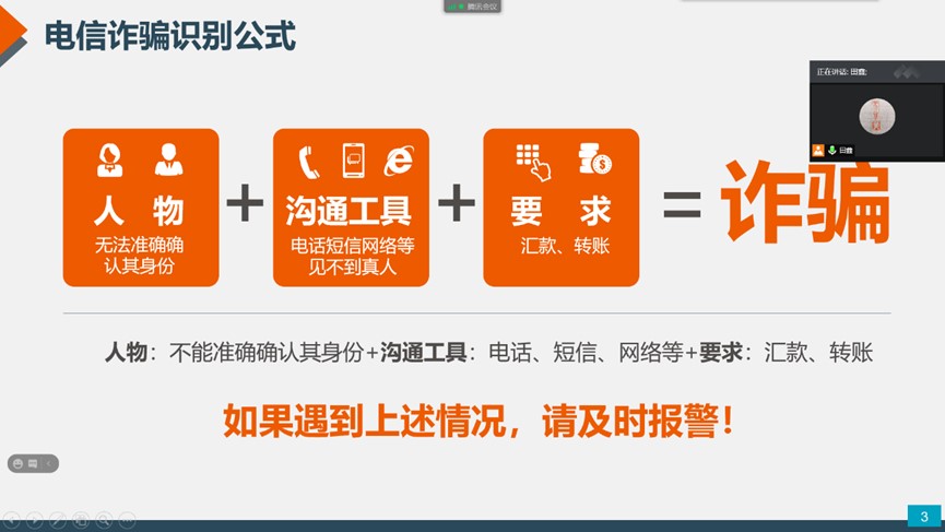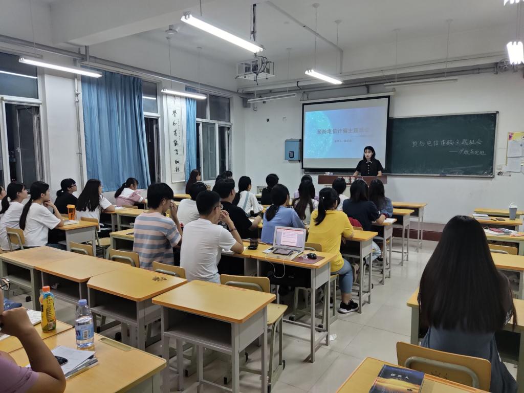 八个月的漫长假期,各路骗子也在此时蠢蠢欲动,刚返校的同学很容易一不小心就会落进骗子精心布置的陷阱。为提高同学们的警惕,防止电信网络诈骗,9月6日,历史与社会发展学院18级各班采取线上会议方式进行防诈骗宣讲班会,19级在自习教室开展防诈骗宣讲班会。