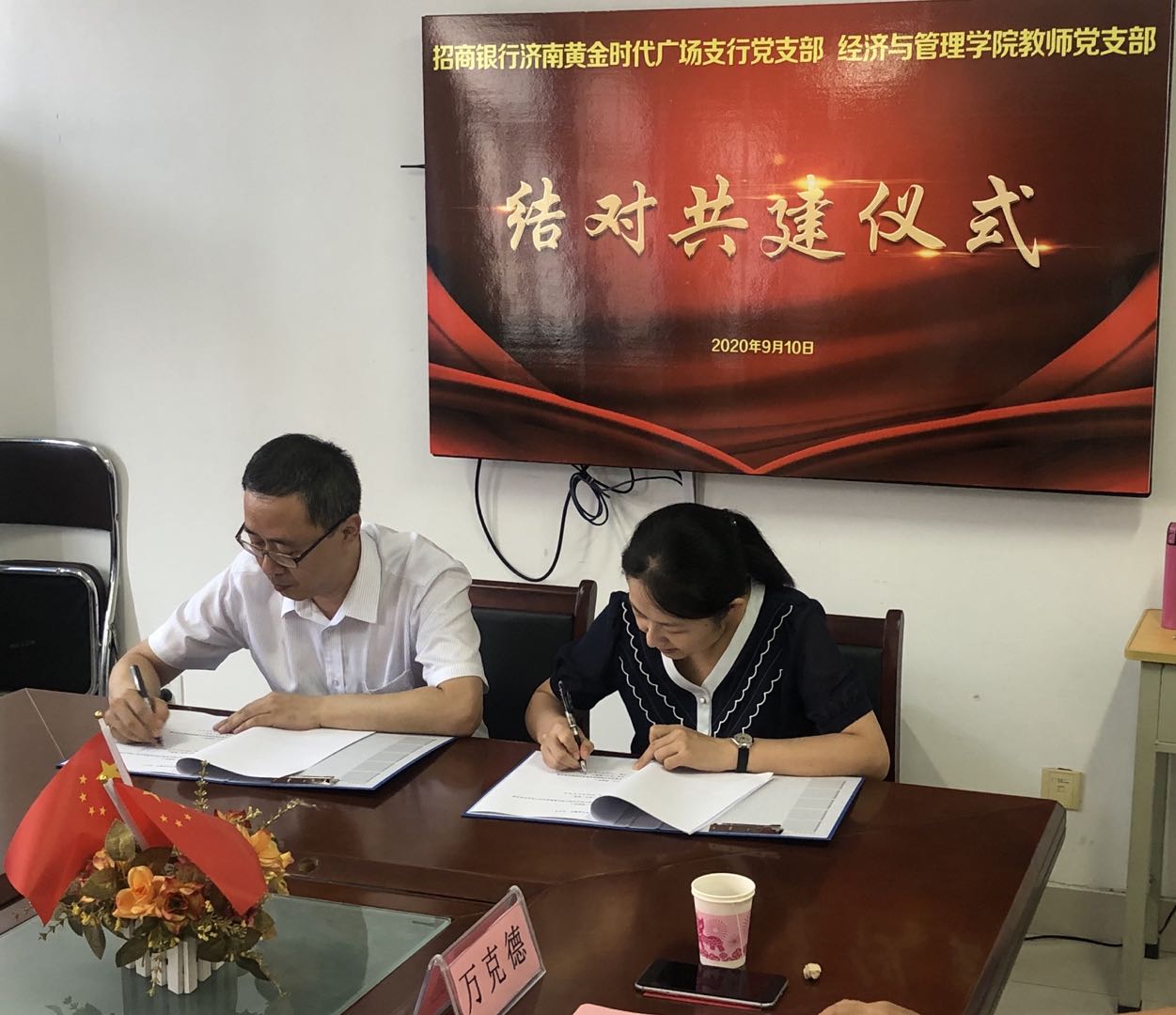 结对共建聚合力 党建引领促发展--经济与管理学院教师党支部与招商银行济南黄金时代广场支行党支部签订党建共建合作协议