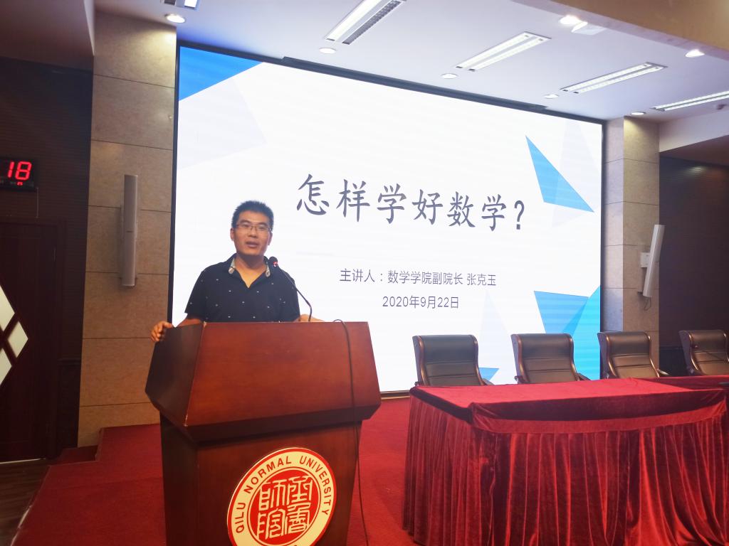 在后续的新生入学教育课中,张克玉副院长就“怎样学好数学”这一问题与同学们进行了深入交流,结合生活中生动形象的例子,对数学学科进行了详细的阐释,为2020级新生后期更好地学好数学提供了方法、指明了方向,赢得了同学们的热烈掌声。