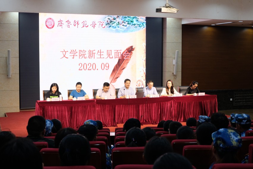 9月23日中午,文学院在章丘校区报告厅隆重举行新生见面会。文学院院长杨峰、党总支副书记于江及办公室、团总支负责人、全体辅导员以及2020级全体新生参加了见面会。会议由文学院团总支书记何睿主持。