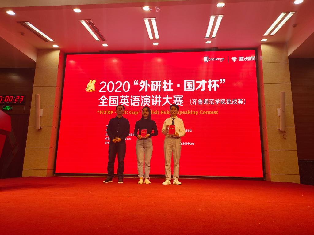 经过激烈的角逐和评委们公正公平的评判,大赛分别评出了特等奖、一等奖、二等奖和三等奖。比赛结果由评委组组长林德奖老师宣布,张海龙副处长、宋秀葵副院长和教师代表为获奖选手颁发荣誉证书。来自外国语学院的李龙水同学和音乐学院的马若源同学分别获得专业组和非专业组特等奖,并将代表BEAT365官网参加“外研社•国才杯”全国英语演讲大赛山东省赛区决赛。
