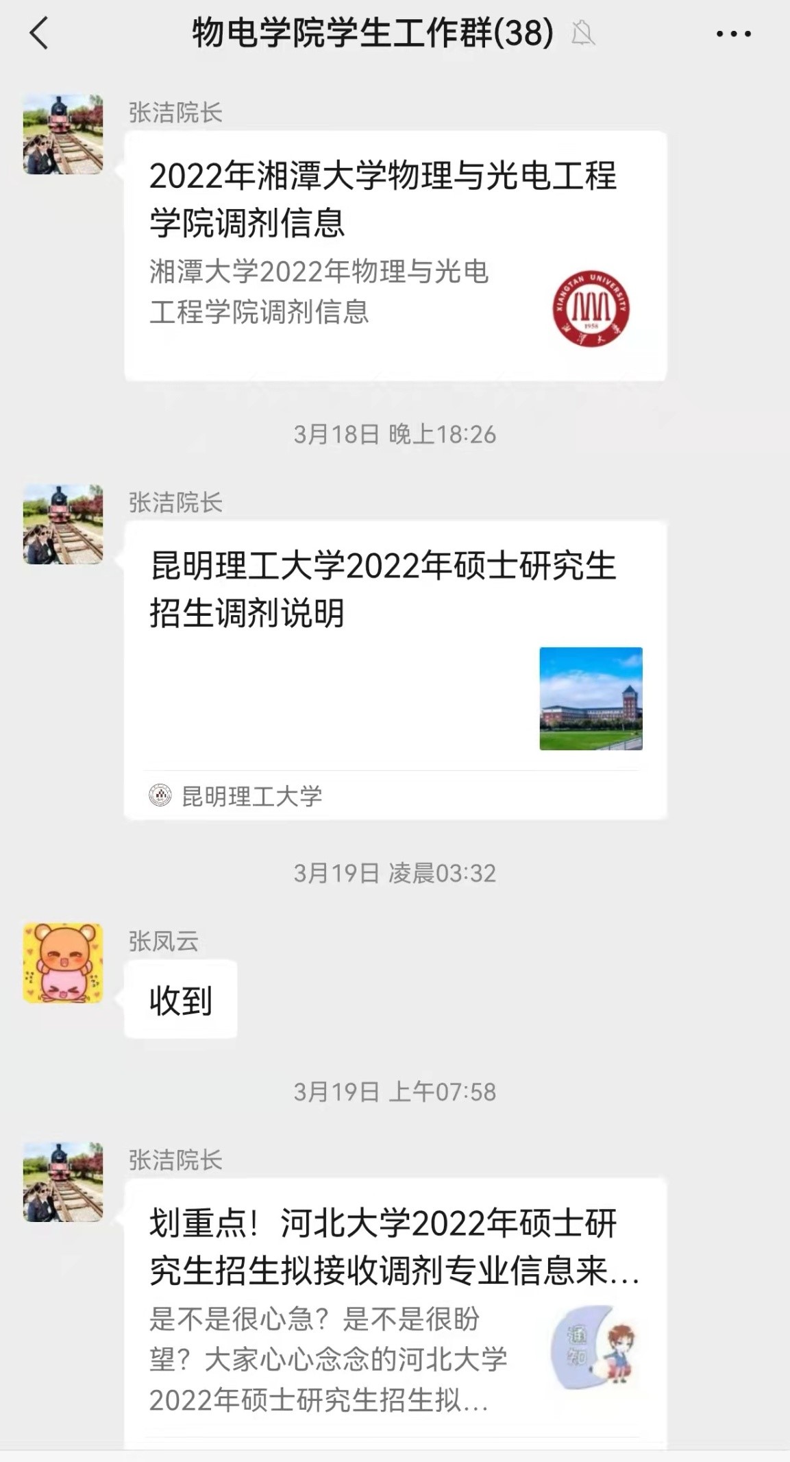 专业老师传经送宝。为精准做好特殊时期考研学生帮扶工作,学院通过各种方式帮助同学们查询各高校相关专业调剂名额。专业老师开展考研复试答疑,讲解了复试政策、心态调整、调剂形势、面试技巧等为复试学生保驾护航。