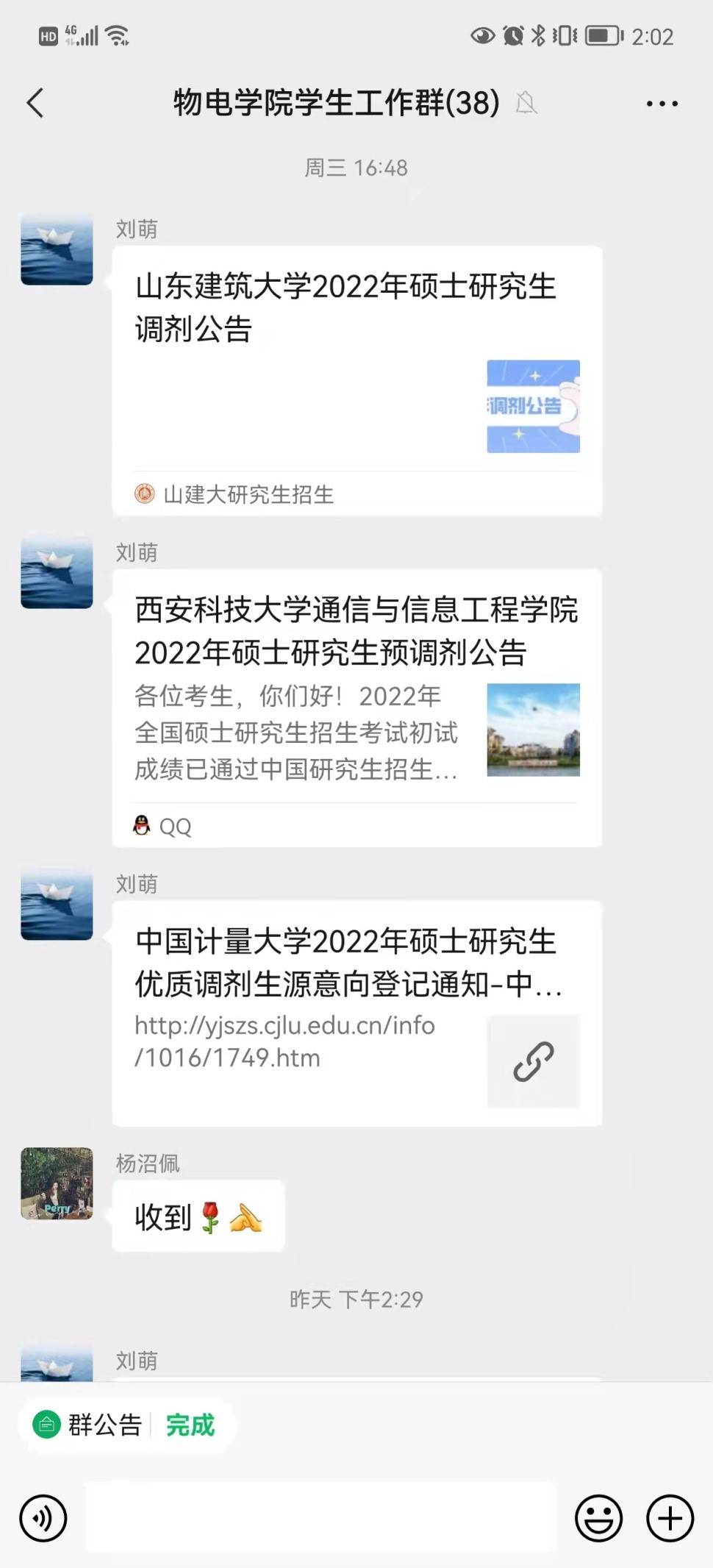 及时沟通用心护航。为帮助考研复试学子缓解压力,坚定信心,鼓舞士气,以饱满的精神状态和良好的心态迎接复试,学院专门安排两名辅导员与复试考生进行深入交流,鼓励同学们调整心态,保持乐观,以最好的姿态通过复试。