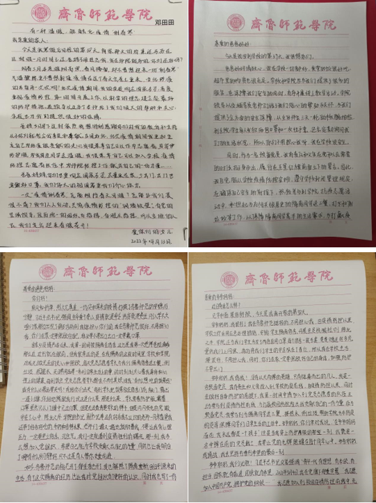 一封封家书寄托着同学们满满的思念,一字一句都在向家长表达着自己对校对家的感情,字里行间表达着自己对党对国的感恩,表达着自己战疫过程中的成长,表达着身为党员的自豪和担当。从“党员突击队”的鲜艳旗帜写到坚守“疫线”的志愿者们,从防护服下辛苦的医务工作者写到在学校连夜值班的辅导员老师,从同学间的相互关爱写到坚守岗位的餐厅的叔叔阿姨们,一笔一划都在让家长安心放心。