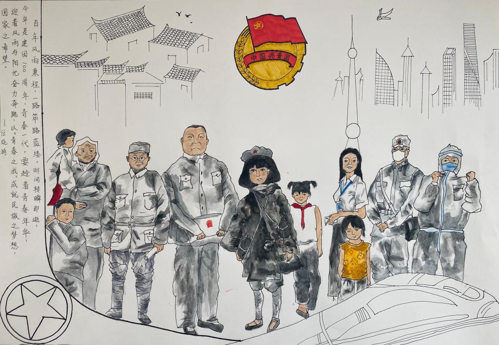 青春风,中国梦,画笔绘真情,组织青年学生参加“建团百年,青春妙绘”书画作品及手抄报作品活动,发挥青年人的想象力与创造力,将历史的厚重与青年人的炙热相结合,回顾光辉岁月,展望美好未来。